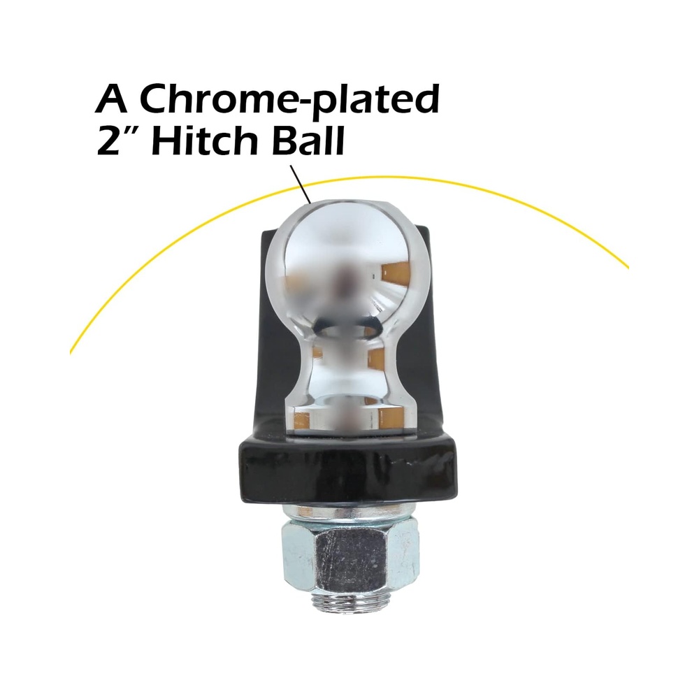 Includes high quality 8” ball mount, a chrome-plated 2” Hitch Ball with 1” Shank, and a 5/8” Pin with clip that provides reliable towing for any rugged industrial application.