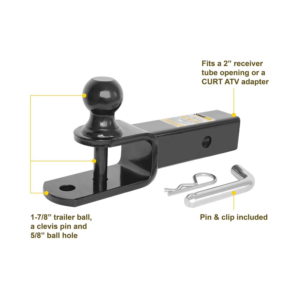 Kit includes: 1-7/8″ ball that is welded into place to allow your trailer to be coupled immediately, 2″ shank, 5/8″ pin hole, 5/8″ hitch pin to securely mount to fit any class III and IV standard 2″ hitch receivers, 6″ from center of hitch pin hole to center of integrated ball