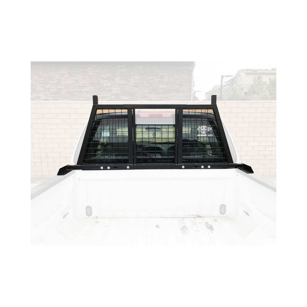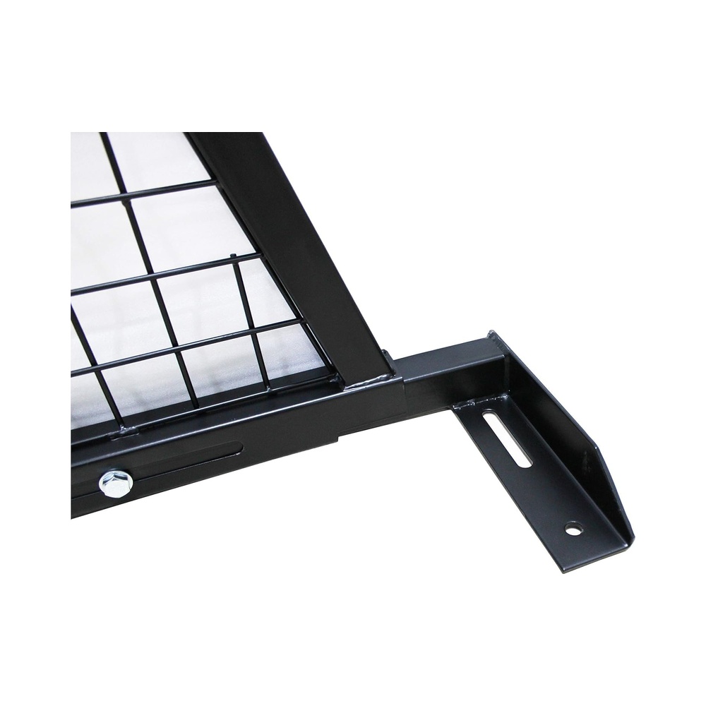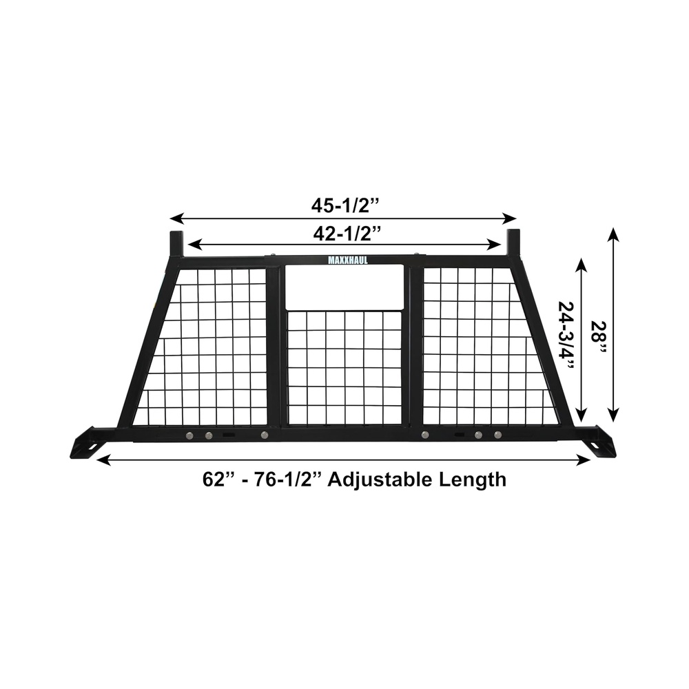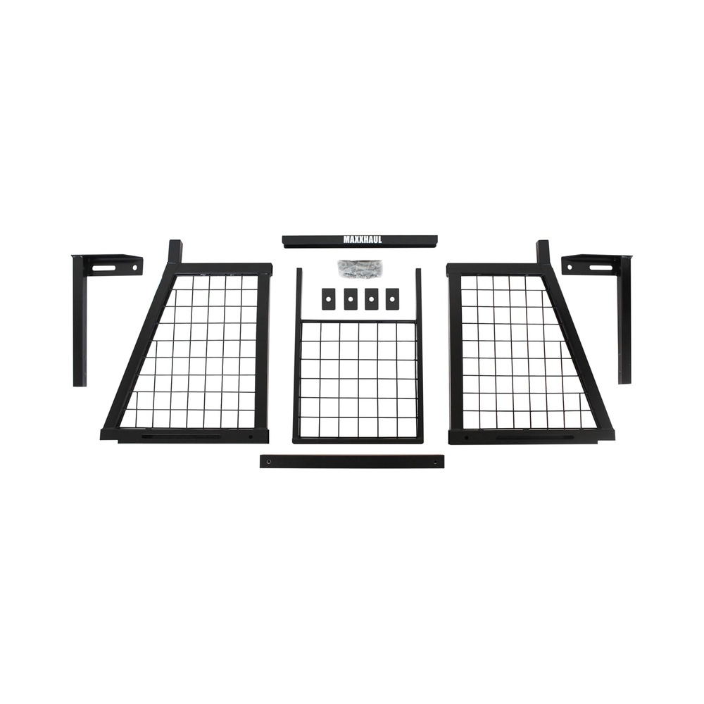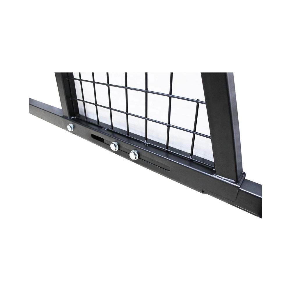 Protect yourself and the cab of your truck from shifting cargo with our sturdy MaxxHaul 50629 Knockdown Type Steel Headache Rack. The rack is constructed from commercial grade steel for heavy duty use with a strong design. The kit includes large 2” square powder coated steel tube, welded 3/16” cold- rolled wire, and 2” wire screen to provide full visibility. The rack is equipped with no-drill bolt-on installation for trucks with stake pockets. The grid-style screen shields you without obstructing your view. The bottom adjusts from 60″ to 72″ to fit different truck bed widths.