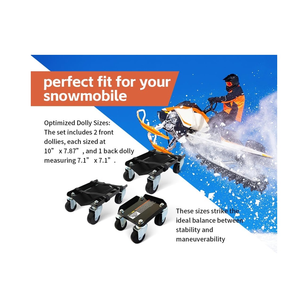 Optimized Dolly Sizes: The set includes 2 front dollies, each sized at 10” x 7.87”, and 1 back dolly measuring 7.1” x 7.1”. These sizes strike the ideal balance between stability and maneuverability, ensuring a perfect fit for your snowmobile.