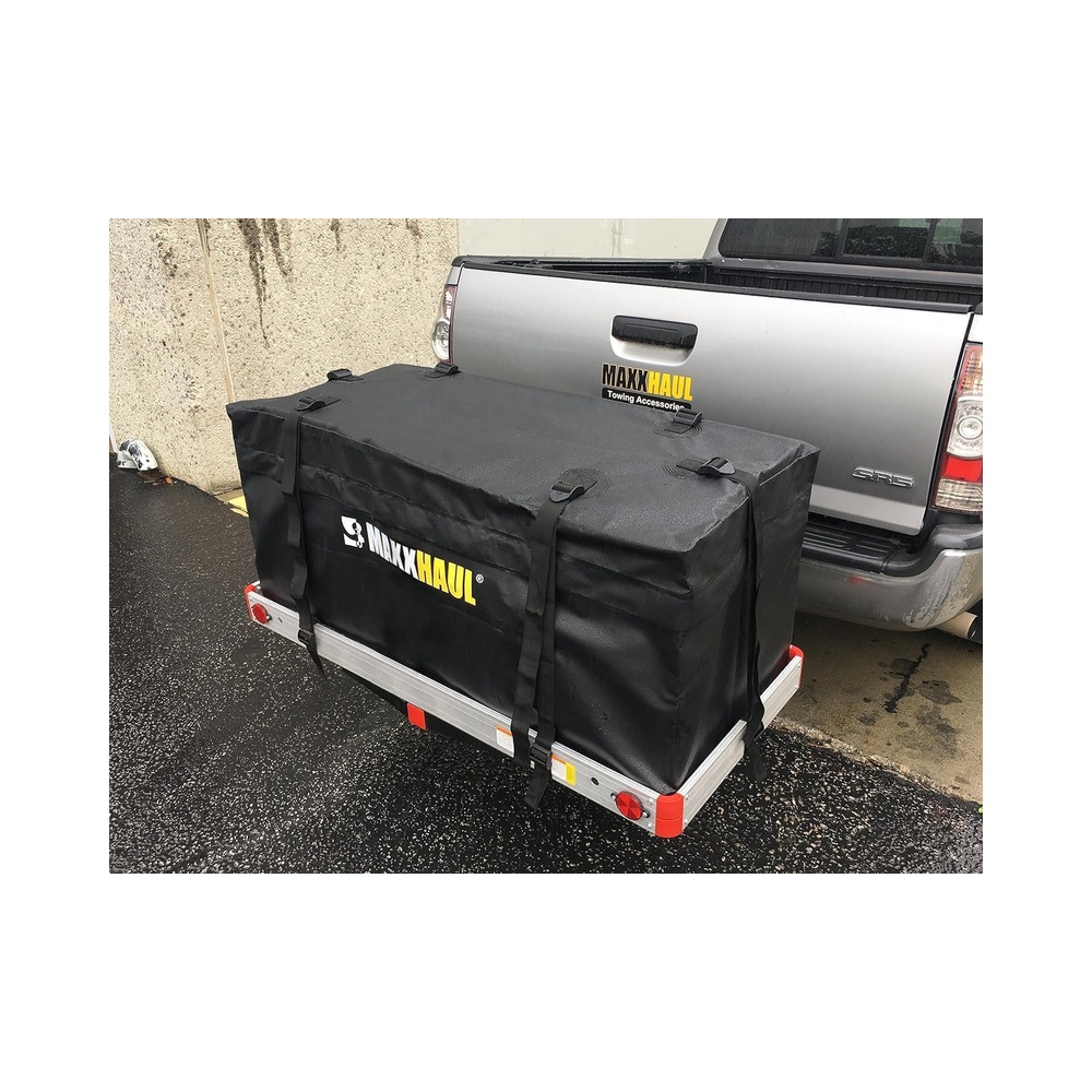 Our MaxxHaul Hitch Mount Cargo Carrier Bag allows you to store and transport your cargo carrier outside your vehicle rain or shine! It provides instant cargo space while protecting your belongings from outside elements.