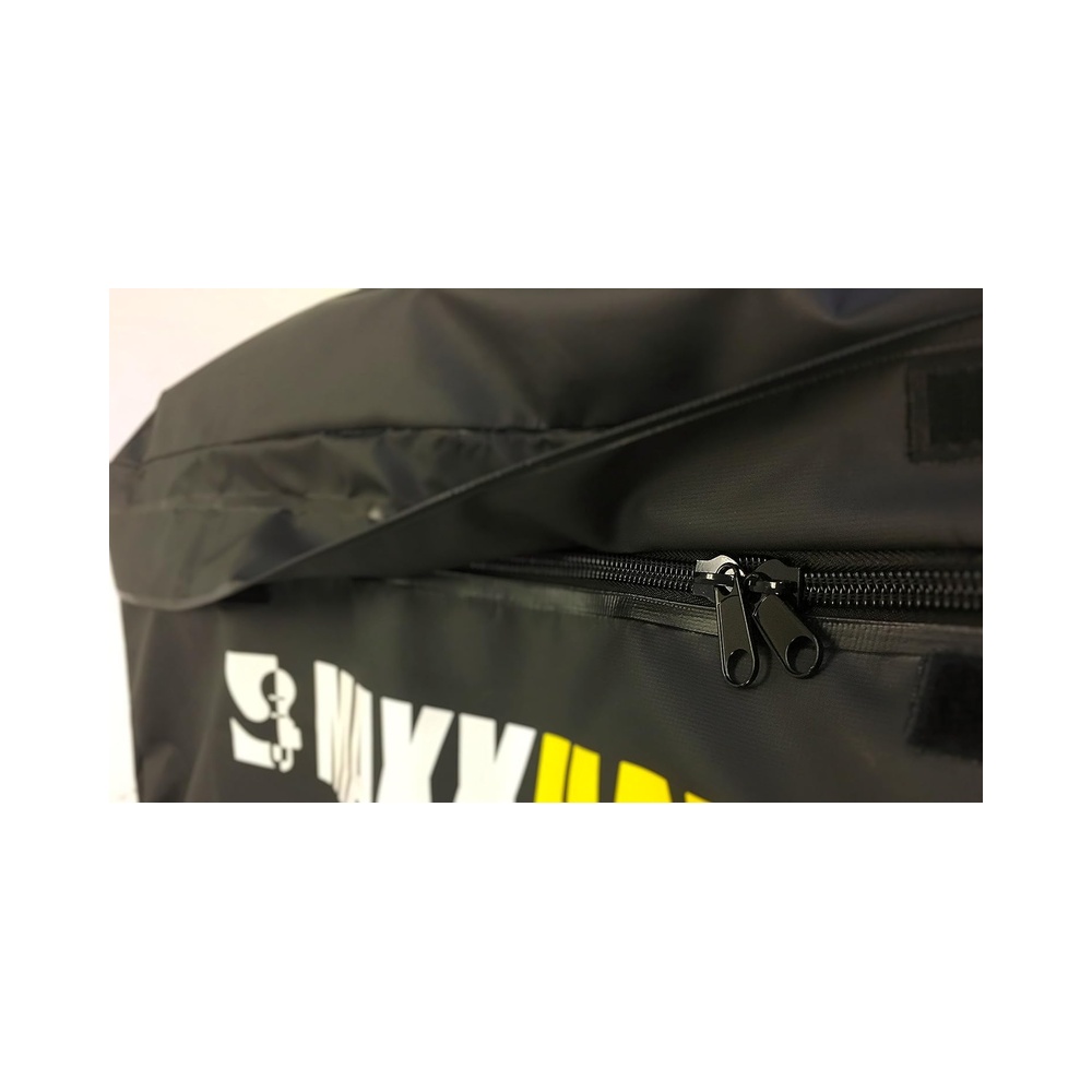 Features welded seams and heavy duty zipper that is placed around the 3 side of the bag