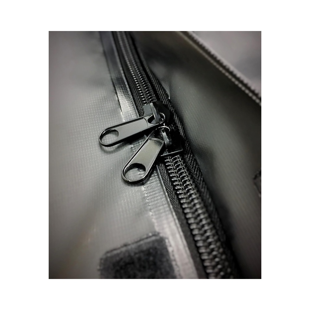 Zipper is covered with hook and loop flaps for improved water protection. Zippers come with large holes allowing use of padlocks for extra security.