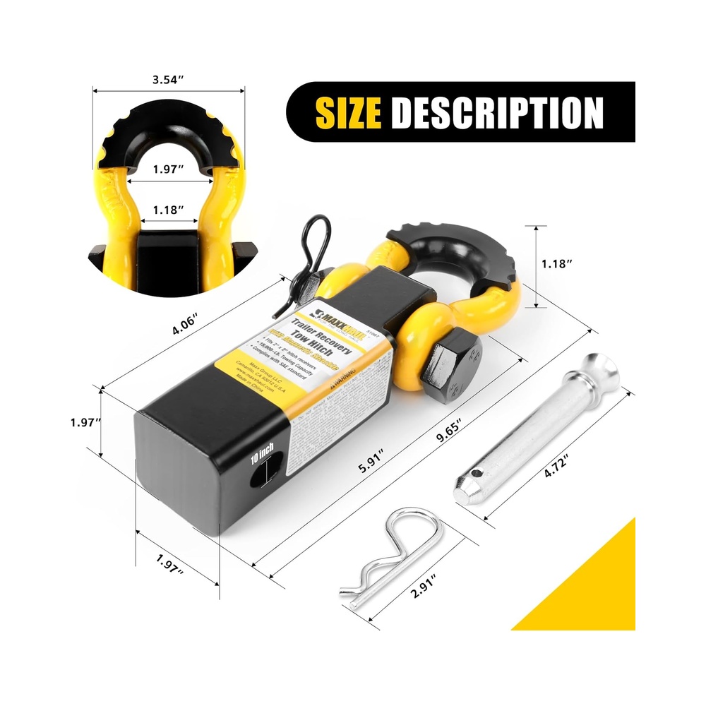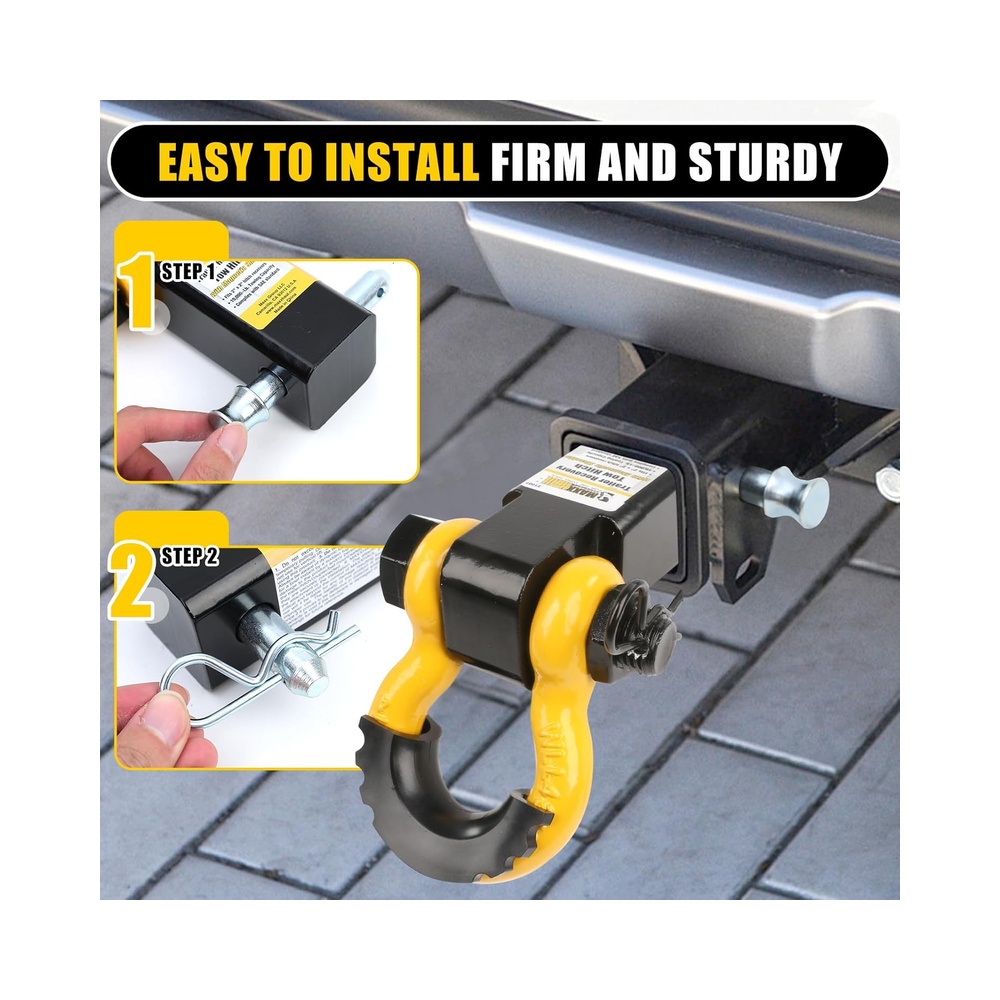 Universal Fit – Designed to fit all standard 2-inch hitch receivers, making it compatible with most trucks, SUVs, and off-road vehicles. Secure and Stable – Includes a 3/4-inch D-ring shackle for a reliable and secure connection during towing and recovery operations.
