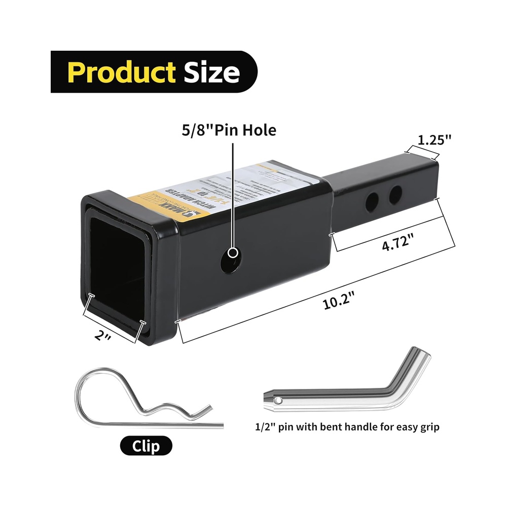 Our MaxxHaul Hitch Adaptor converts your 1-1/4 inch receiver to accept 2 inch hitch mount accessories. Not to be used for towing a trailer. All MaxxHaul ball mounts are coated with heavy duty black powder finish to resist rust and corrosion and are manufactured and tested to meet all current SAE safety standards.ONLY FOR CLASS II HITCH RECEIVER.