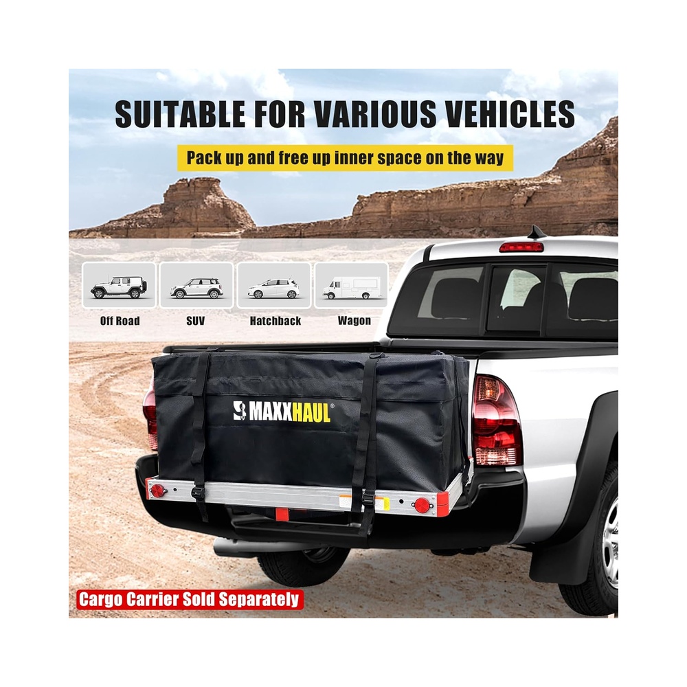 Our MaxxHaul Hitch Mount Cargo Carrier Bag allows you to store and transport your cargo carrier outside your vehicle rain or shine! It provides instant cargo space while protecting your belongings from outside elements.