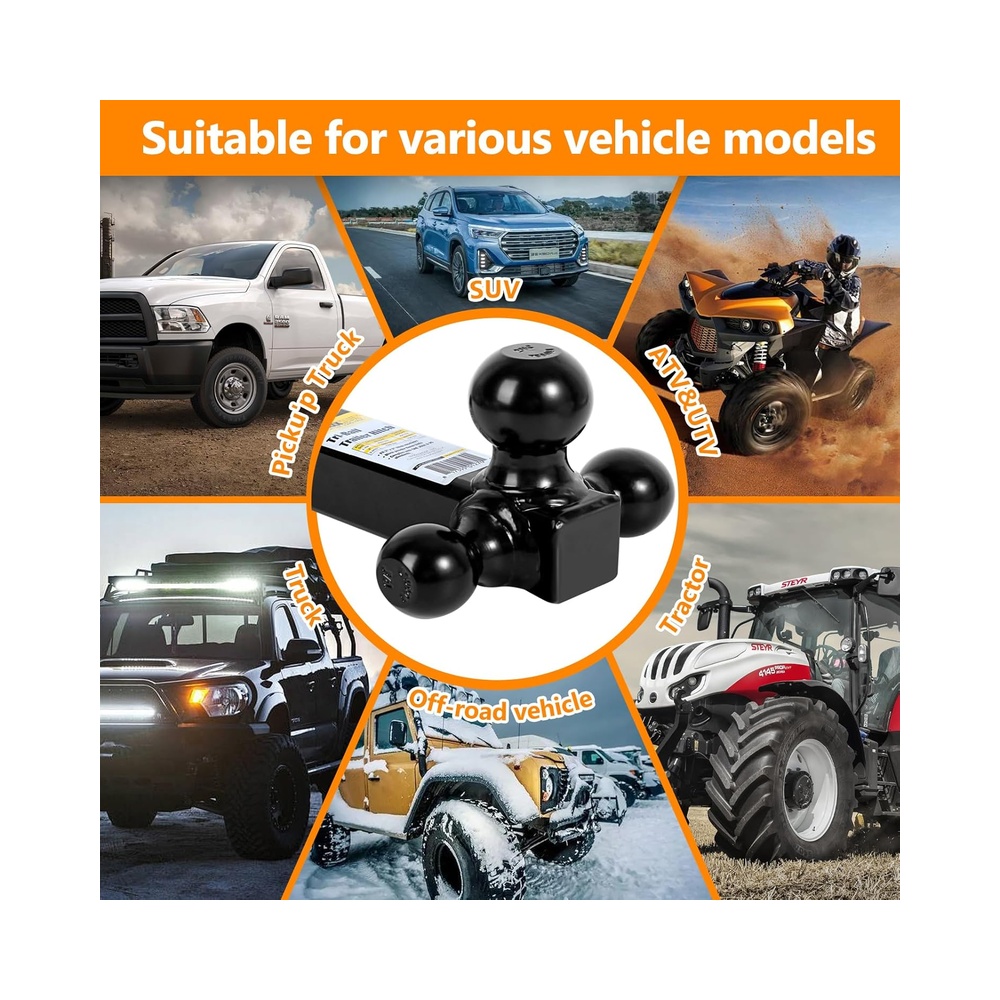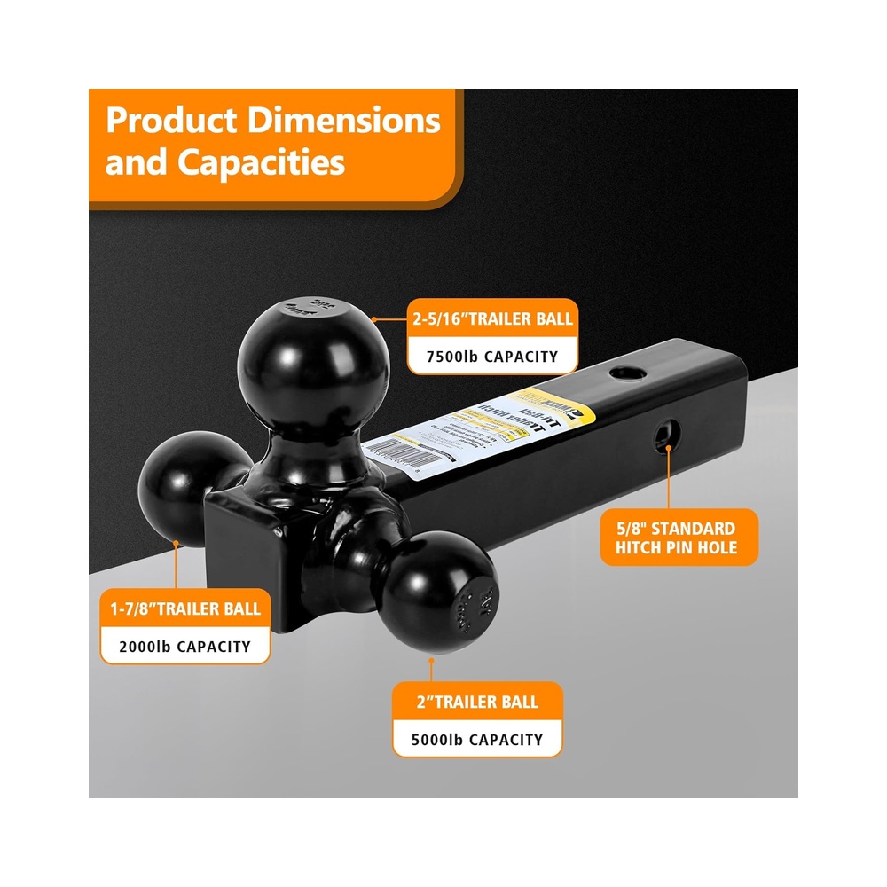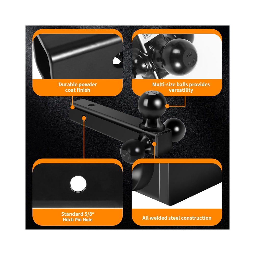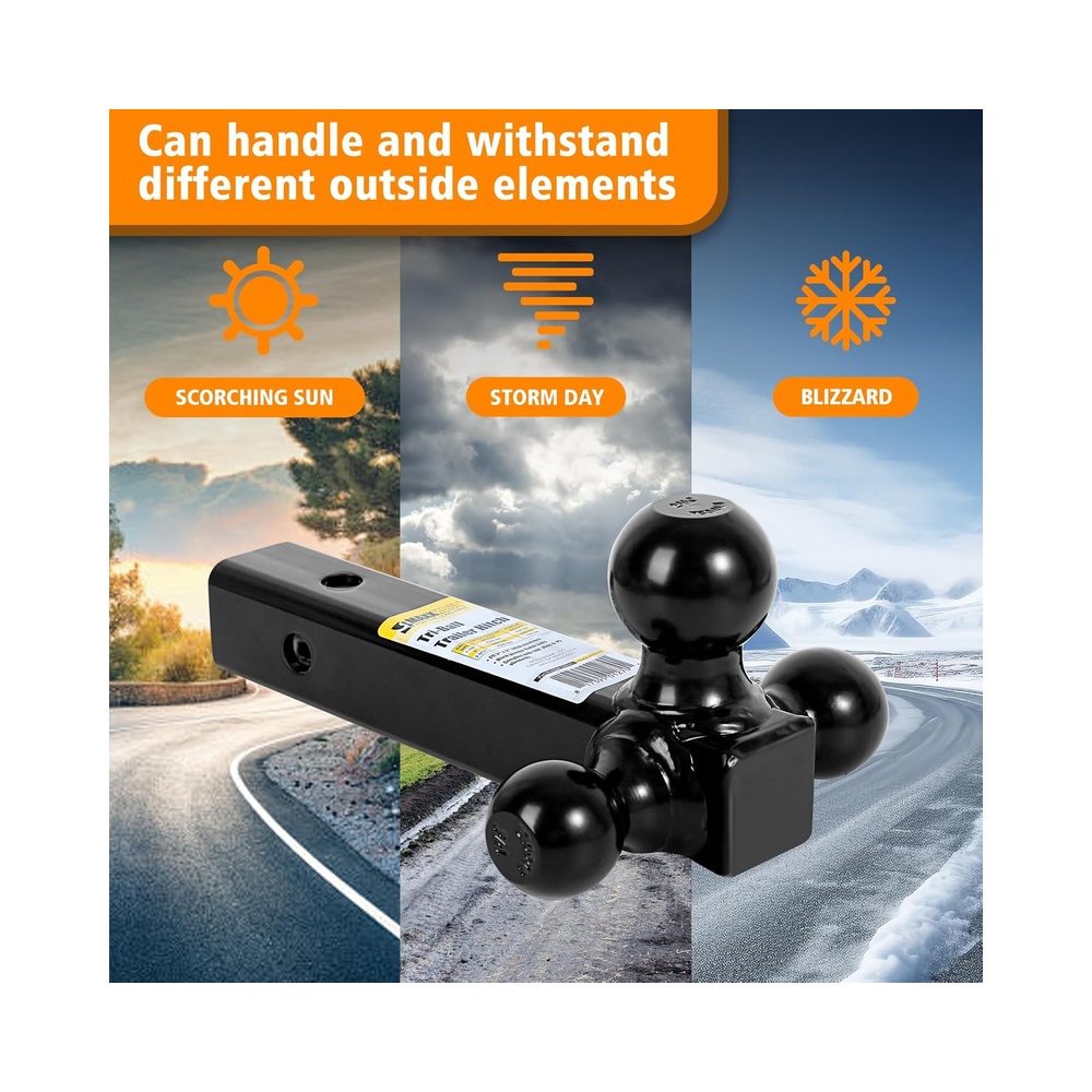 MaxxHaul 70270 Trailer Hitch Hollow Shaft Triple Ball Mount – Black