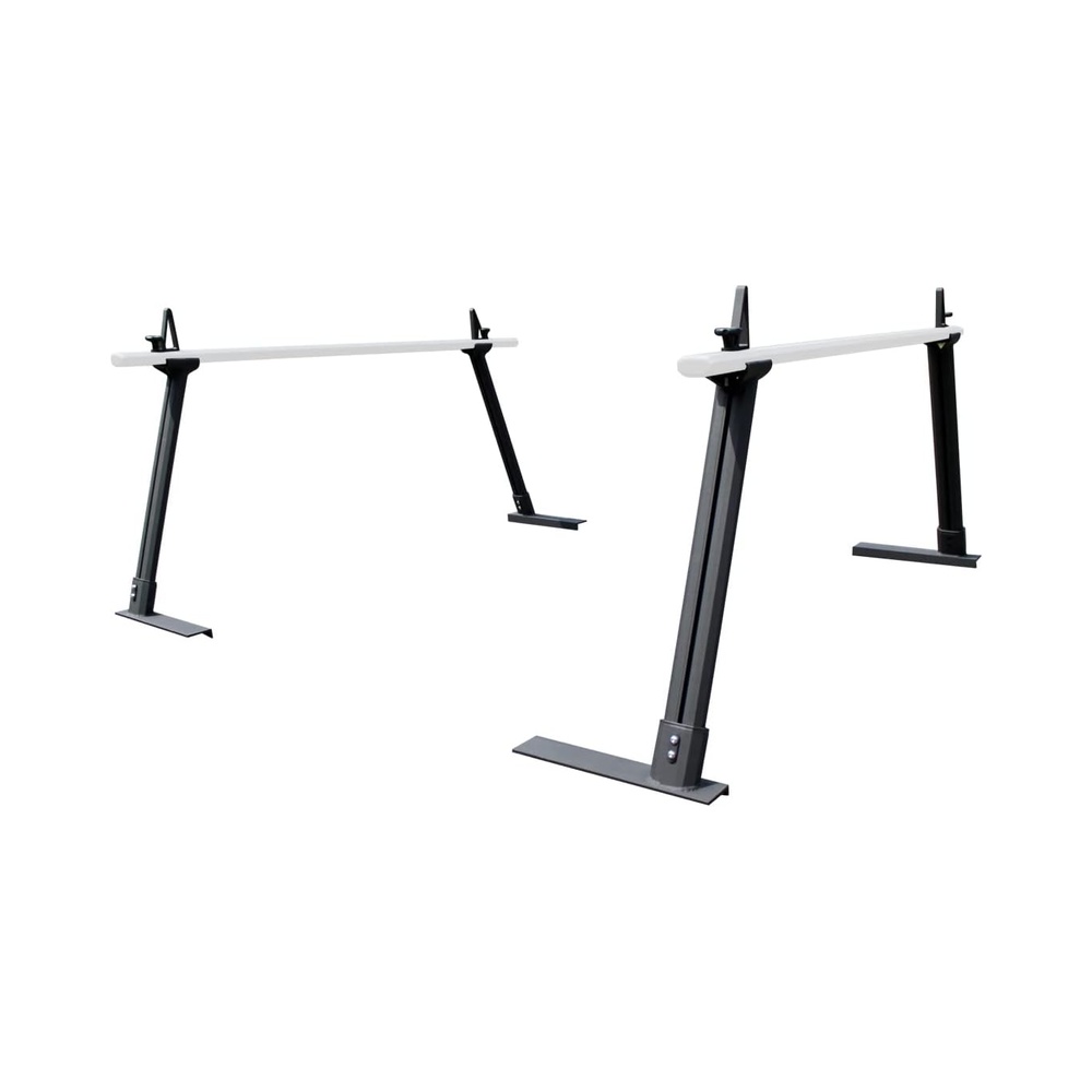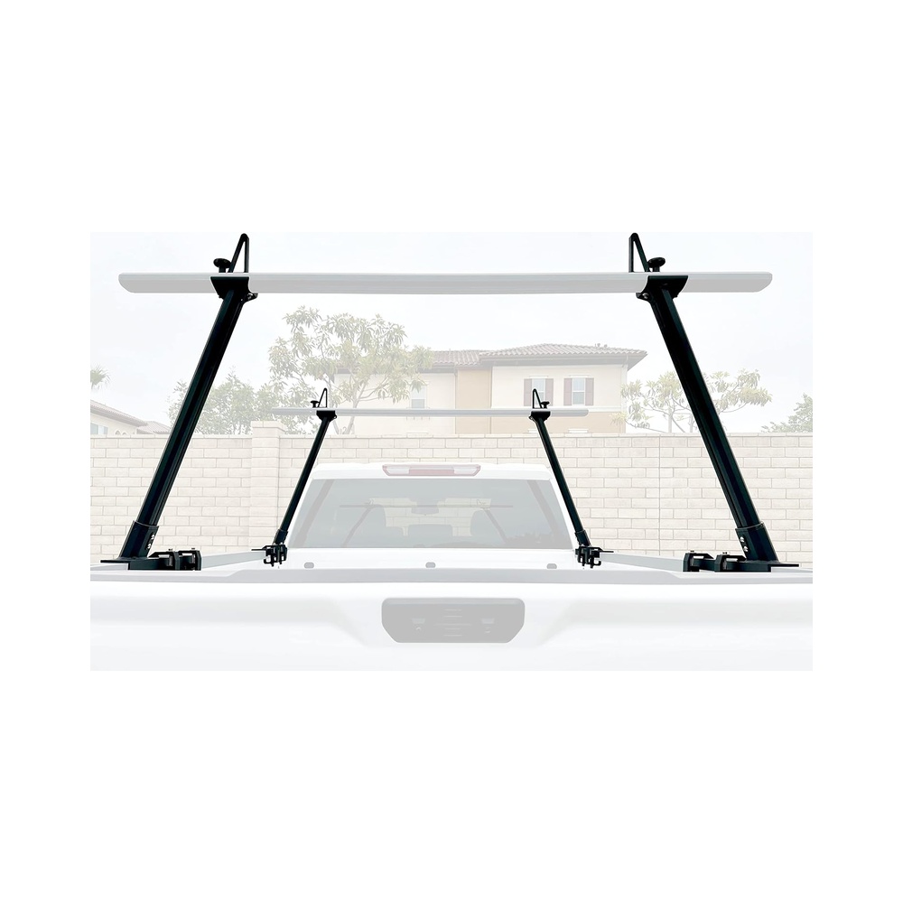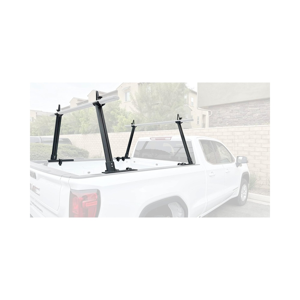 Use our Maxxhaul 50614 Aluminum Truck Rack Fixed Height for hauling ladders, lumber, planks, and much more. It is constructed from aluminum with a powder coat finish to withstand rust and corrosion. The rack features a fixed mid-height position of 28″. Adjustable mount width (mounting braces inside distance) is equipped from over 66″ to fit most truck beds. The rack protects different size loads with the provided load stops that adjust to the full width of the truck. It is designed with a C-clamp mounting system for no-drilling required and easy installation. It provides a maximum on-road rating of 500 lbs and a maximum off-road rating of 300 lbs. The rack is ideal for any shop owner, home craftsman or contractor with a lot of equipment to haul. Note that you will need MaxxHaul 50260 Cross Bars (not included) to use this as a complete rack system.