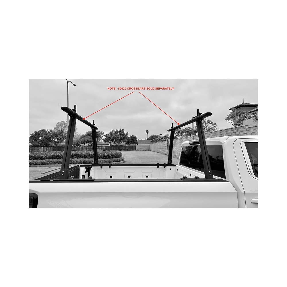 NOTE: CROSSBARS NOT INCLUDED. USE MAXXHAUL 50620 ALUMINUM CROSS BARS TO USE THIS AS A COMPLETE RACK SYSTEM